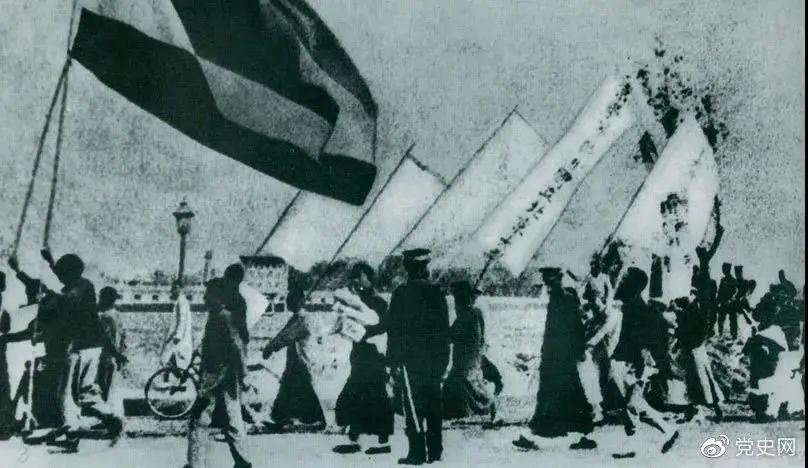 1919年5月4日,北京爆發(fā)學(xué)生反帝愛國運(yùn)動(dòng)。這是北京大學(xué)學(xué)生的示威游行隊(duì)伍。